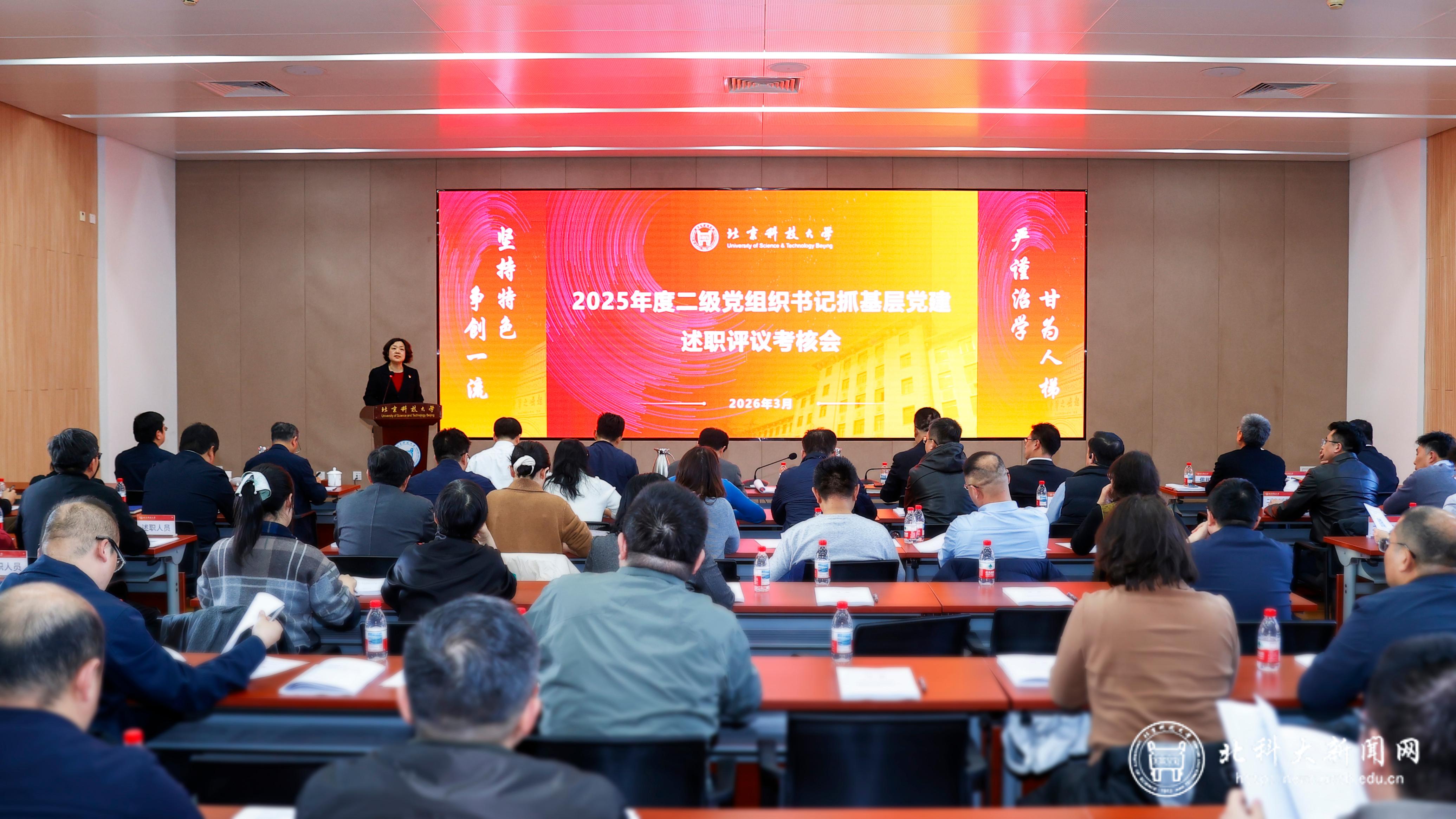 3月3日,学校党委召开2025年度二级党组织书记抓基层党建述职评议考核会,对全校32位二级党组织书记履职情况进行评议。党委书记徐晓萍对现场述职的二级党组织书记逐一点评。校领导、两委委员、中层正职、“两代表一委员”、师生代表,对抓基层党建工作进行了考核测评。会议由党委副书记孙景宏主持。